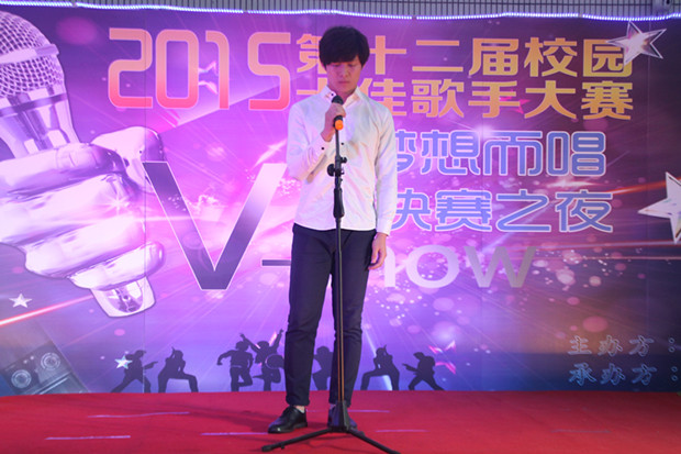 本届校园歌手大赛自4月初团委下发通知,共有50余名同学踊跃报名,积极参与,经过3轮初赛,1轮复赛,最终诞生10名选手晋级到决赛的舞台。在大赛开始之前,播放了老师和同学们对选手表达期许的视频。10位歌手共同演唱的开场曲《海芋恋》拉开了比赛的帷幕,台下的同学们热情高涨,为台上的每一位选手加油助威。令人感动的《离歌》,气势磅礴的《one night in 北京》,温暖贴心的《拥抱》……一首首悦耳动听的歌曲如一幅幅水彩画缓缓的展现在观众们面前,让观众犹如置身歌曲中唯美的场景。