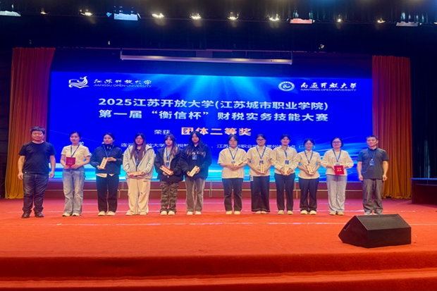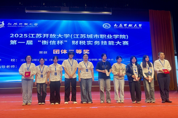 9月21日,2025年江苏开放大学(江苏城市职业学院)第一届“衡信杯”财税实务技能大赛在南通开放大学圆满落幕。本届赛事吸引全省系统内19支队伍同台竞技,我校大数据与会计专业八位学生在张云洁、邵燕平和袁玲老师的精心指导与学院、学校的全力支持下,凭借扎实的专业功底与出色的团队协作,从激烈角逐中脱颖而出,最终由21大数据与会计1班的刘孝欣、徐佳鑫和21大数据与会计2班的陶心茹,22大数据与会计1班的朱月瑶四人组成的团队获二等奖、由21大数据与会计1班的钱莹、周瑞莹、高敏和22大数据与会计1班的李琳组成的团队获三等奖,展现了新时代财税学子的卓越风采。