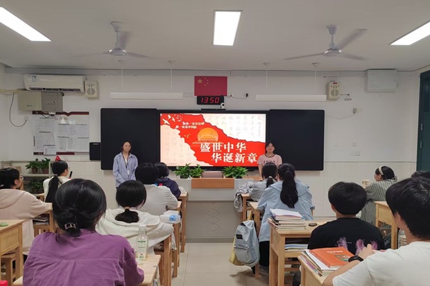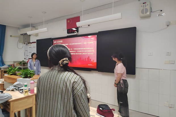 班会伊始,朱英杰与袁家欣以生动详实的讲解,带大家回溯了国庆节的由来。1949年10月1日,中华人民共和国开国大典在首都北京天安门广场隆重举行,标志着中国人民在党的领导下取得人民革命伟大胜利,彻底脱离了封建主义压迫,从此当家作主。这一历史,让同学们深刻认识到国庆节背后承载的厚重历史意义,以及新中国成立对中国历史发展的里程碑式价值——它结束了中国一百多年来被侵略、被奴役的屈辱历史,让中国成为真正独立自主的国家,中国人民从此站起来了。