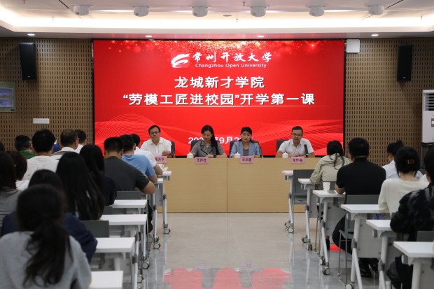 9月29日下午,龙城新才“劳模工匠进校园”开学第一课在我校5-12会议室举行。常州市总工会副主席王丹丹,老三集团样品部长、工会主席李承霞,常州市总工会宣网部副部长毛人杰,常州开放大学党委副书记、校长朱丹平,副校长朱怀淼,龙城新才学院全体学员、学务导师和相关人员参加会议,会议由副校长朱怀淼主持。
