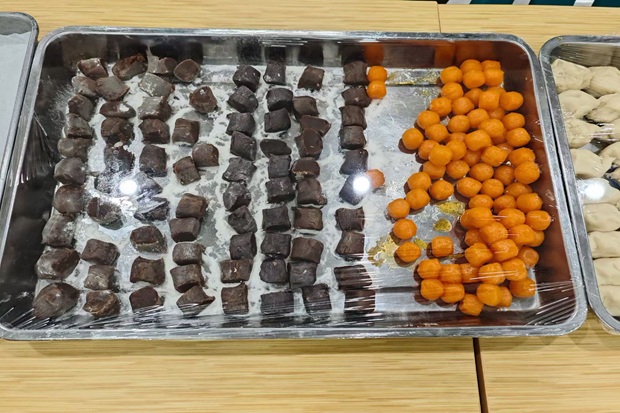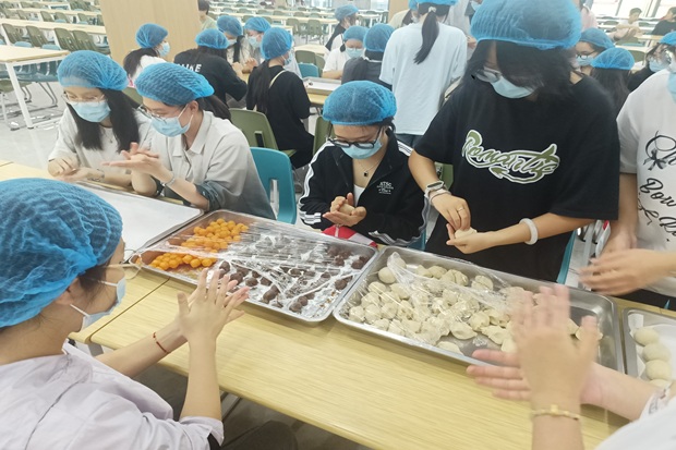 活动当天,为确保活动顺利进行,食堂方面提前做了精心准备,和好的柔软饼皮、香气扑鼻的红豆沙馅以及金黄诱人的咸蛋黄馅料整齐摆放,静候同学们大显身手。下午三点,热情满满的同学们准时抵达,满怀期待地投入到这场独特的美食文化体验中。在食堂阿姨们的耐心示范和指导下,同学们纷纷洗净双手,跃跃欲试。揉捏饼皮、分切馅料、包裹收口……每一个步骤看似简单,却都考验着耐心与巧思。在不断尝试下,同学们很快掌握了技巧,动作也变得娴熟起来。