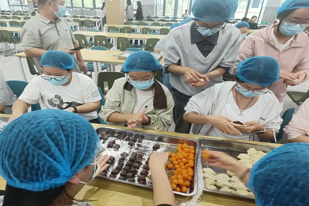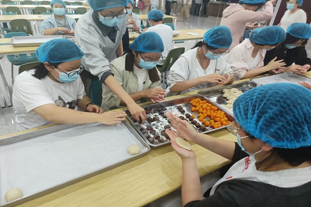秋韵盎然,丹桂飘香,为弘扬中华民族优秀传统文化,增进团支部成员的凝聚力,共同迎接中秋佳节的到来,9月29日下午三点,22大数据与会计1班团支部在学校食堂组织了一场“月满情浓,巧手迎佳节”包月饼主题团日活动。
