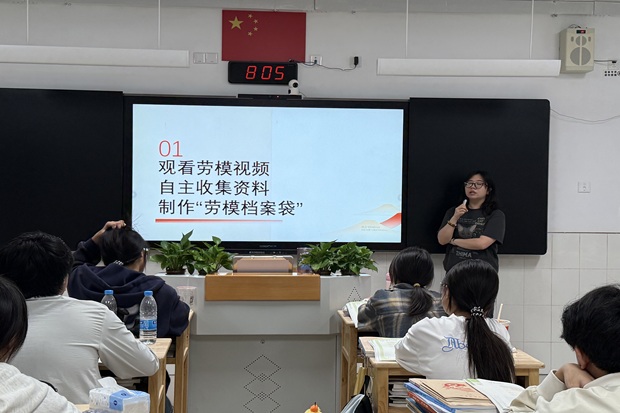 最后的“劳模事迹展示会”成为传递精神力量的重要平台。同学们自己分组制作PPT,在班级集中展示,分别讲述了黄大年、屠呦呦、钟南山、刘洋等劳模。结束演讲后,全班也交流了各自的学习心得,上台分享的同学结合专业特点,将劳模精神与学业成长紧密结合,引发了大家的强烈共鸣。同学们纷纷写下感悟:“向劳模学习,把小事做细,把细事做精”“以奋斗为笔,书写自己的青春答卷”……一句句真挚的话语,汇聚成班级践行劳模精神的共同承诺。