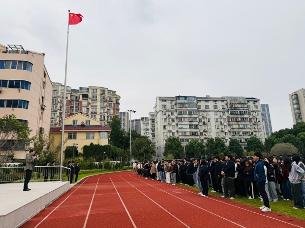 在庄严的升国旗、奏唱国歌之后,校团委工作部部长、22大数据与会计1班蒋思雨同学进行了《诚信尚俭,共享食安》的主题发言,号召全校学生自觉维护校园食品安全,合理点餐守住“舌尖上的节约”,做校园食品安全的“守护者”,做节约粮食的“践行者”。