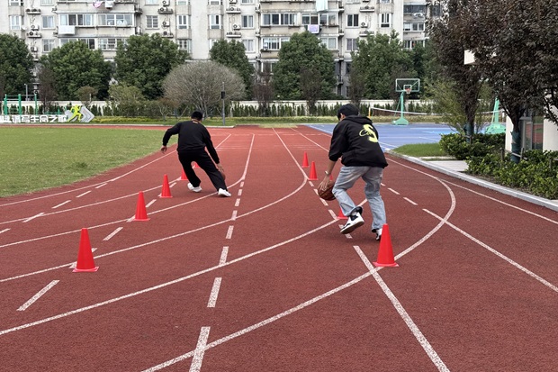 紧接着的篮球绕桩赛,将竞技氛围推向高潮。一个个红色桩桶组成挑战关卡,两专业的同学们轮番上阵,运球穿梭间尽显技巧与胆识。25现代物流管理班的同学凭借扎实的篮球功底,运球稳健、变向灵活,以37秒的亮眼成绩一气呵成;23商务英语的同学也全力以赴,虽以51秒的成绩暂落一筹,却在赛中展现了不服输的青春韧劲,此轮25现代物流管理班成功扳回一局,让赛事悬念迭起。