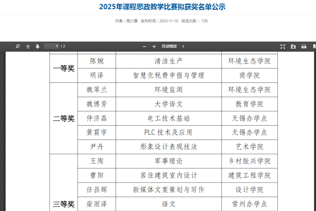 11月14日,江苏开放大学《课程思政》教学设计比赛结果公布,柴雨泽老师荣获三等奖。这一成绩体现出文法系在课程思政中获得了一定的实践成果,同时提升了团队凝聚力。
