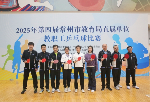 11月15日,由常州市教育局、常州市教育工会主办的第四届常州市教育局直属单位教职工乒乓球比赛在田家炳高级中学举行。我校十名老师组成参赛代表队,由校党委书记陶琪艳领队,党委副书记肖志民担任教练。