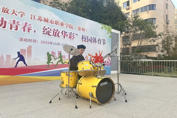 开场环节,吉他社成员吴子浩带来架子鼓独奏《城市觉醒》,强劲的鼓点如惊雷破夜,从舒缓铺垫到激昂爆发,鼓手利落的击打节奏将城市破晓的张力与青春觉醒的力量诠释得淋漓尽致,极具冲击力的表演瞬间点燃全场,让在场同学直呼“震撼”,为音乐会拉开了热血澎湃的序幕。