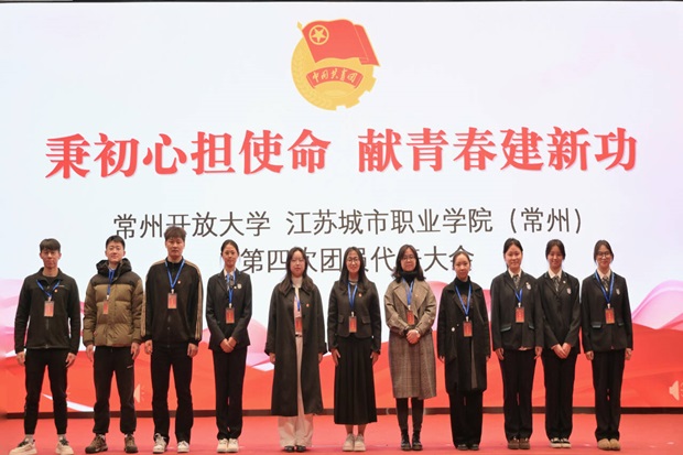 2025年12月10日,共青团常州开放大学、江苏城市职业学院(常州)第四次代表大会在庄严的国歌和团歌声中隆重开幕。常州市教育局统群处处长王建强、教育团工委副书记孙文淼,校党委书记陶琪艳,党委副书记、校长朱丹平,党委副书记肖志民,副校长徐红、朱怀淼等领导出席开幕式。来自刘国钧高等职业技术学校、旅游商贸高等职业技术学校、常州市第一中学、常州市第二中学、常州市第三中学、常州市朝阳中学、常州市教科院附属初级中学的团委负责人以及我校中层干部代表应邀参会。开幕式由李胜男同志主持。