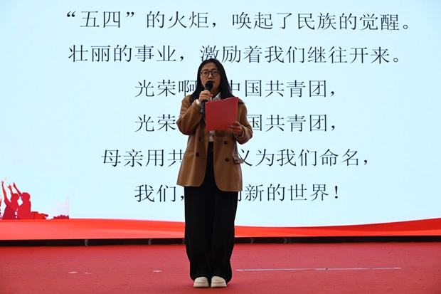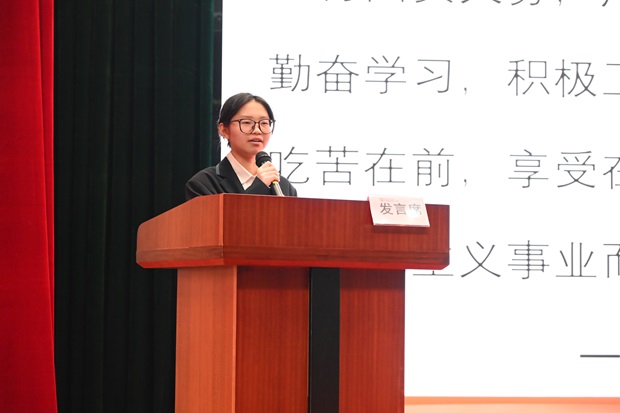 新团员代表万玲同学在发言中表达了加入团组织的激动与自豪,倡议全体新团员时刻以团员标准严格要求自己,为实现中华民族伟大复兴贡献青春力量。老团员代表蒋颂韬同学分享了自己在团组织中的成长感悟,她向光荣加入团组织的新成员表示热烈祝贺,并寄语他们珍惜荣誉,担当使命。