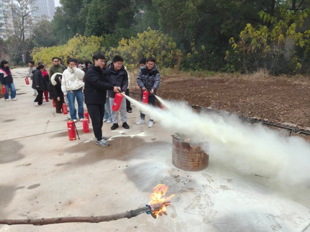 为增强广大师生的消防安全意识,提高我校师生应对险情、扑救初起火灾的能力,创建平安和谐校园,12月24日下午,保卫处组织新进教职工、实验实训室负责人、各部门防火负责人、部分学生宿舍长和宿管员、食堂工作人员和保安等进行了消防灭火实战演练。