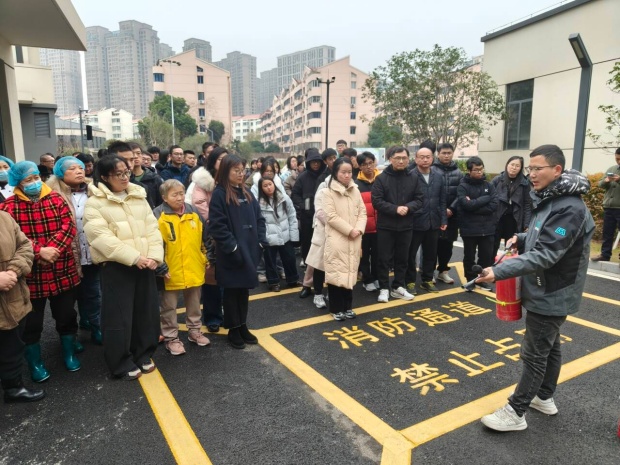 在演练现场,消防维保公司魏经理给大家讲解了灭火器的知识,演练注意事项及正确使用灭火器的方法、灭火步骤与动作要领。随后,面对模拟火场,参加演练人员对照讲演方法和步骤,拔掉灭火器安全栓,一手拿捏着压把,一手提着灭火器喷嘴,对着烈火根部均匀喷洒,亲身体验了使用灭火器扑灭火险的感受,接受了一次消防安全技能培训。