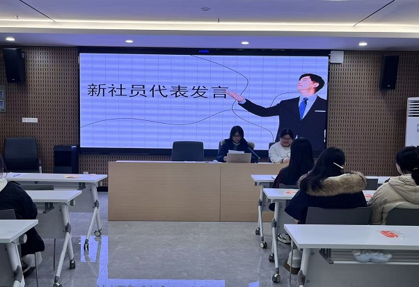 新社员代表孙思远在会上登台发言,结合自身对社会观察的理解与思考,真挚抒发了融入社团大家庭、积极参与实践活动的热切期盼,真挚恳切的话语赢得了在场师生的阵阵掌声。