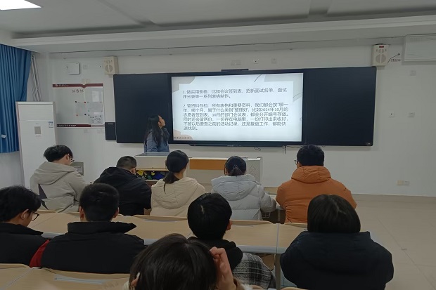 会议伊始,主持人霍雨姗依次介绍出席会议的指导老师及到会成员。第一项议程,由活动部、宣传部、办公室依次进行工作回顾,总结志愿活动策划、宣传推广、后勤保障的成果经验,提出不足与改进方向。第二项议程,由青协副会长章程总结本学期整体工作,指出协会开展了多样志愿活动,志愿者参与积极,服务覆盖校园及周边社区,彰显青年担当。第三项议程,由青协指导老师金健栋老师上台发言,不仅充分肯定了青协本学期的工作成绩,并且在会议中指出,志愿精神是当代大学生不可或缺的精神品质,希望青协全体成员能继续践行“奉献、友爱、互助、进步”的志愿精神,将个人成长与社会需求紧密结合,在志愿服务中收获成长与感动。最后一项议程,大会对本学期表现突出的志愿者进行了表彰,由金健栋老师亲自向优秀志愿者颁发奖状。
