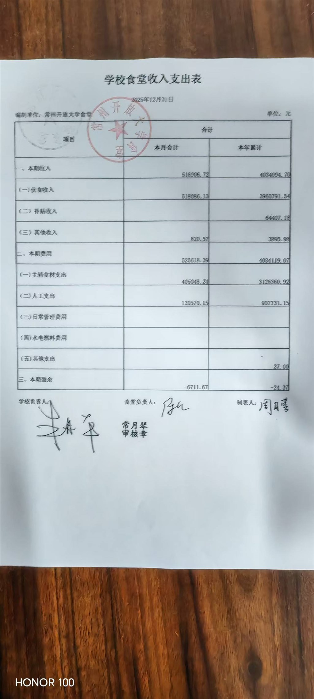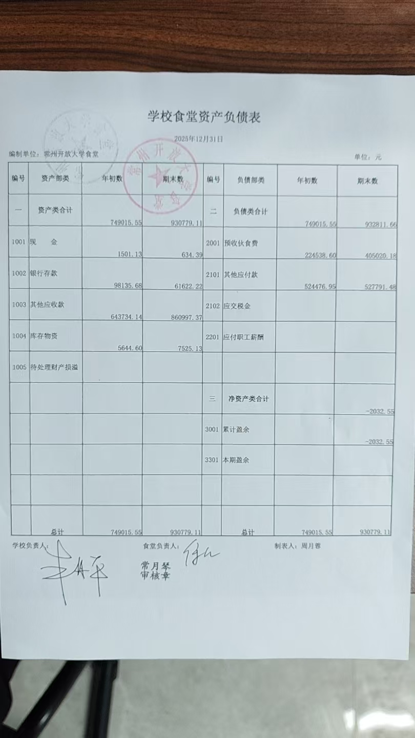 2025年12月食堂财务公示
