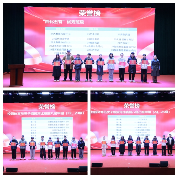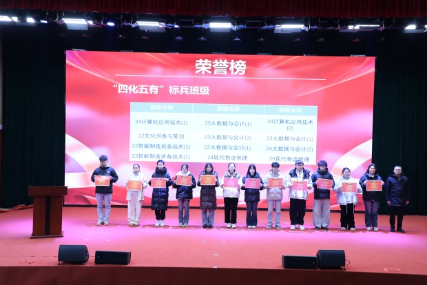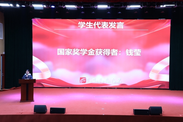 休业式首先对在本学期各级各类活动中表现突出获得荣誉的学生和集体进行了表彰。国家奖学金获得者——21大数据与会计1班钱莹同学做了主题发言,分享了她在校期间的学习感悟、学生干部体会和成长过程。入学之初,她便给自己定下“深耕专业、全面发展”的目标,把五年学习拆解为中职打牢基础、高职深化应用的阶段任务,她以自己的亲身经历勉励学弟学妹们在实践中锤炼本领,让自己既有扎实的专业功底,又有过硬的综合能力。