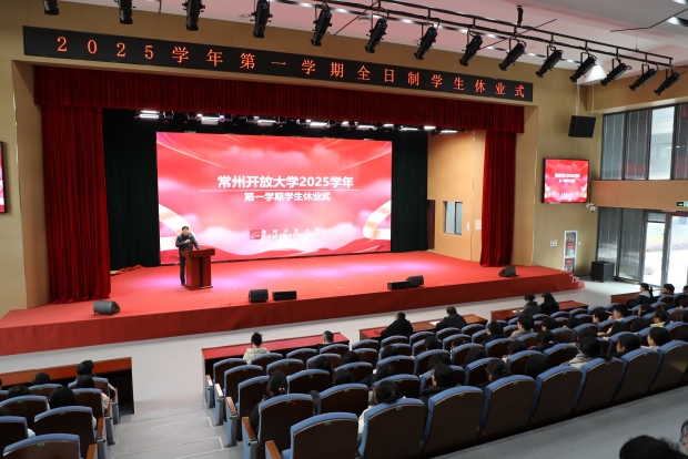 岁月不居,时节如流。点点微光,汇聚成炬。2026年的寒假悄然而至,为给2025秋学期画上圆满的句号,让同学们度过一个充实而安全的寒假,2026年1月27日上午,学校举行了2025学年第一学期休业式。休业式由学工(保卫)处处长孙炜瑜主持,校党委副书记、校长朱丹平,副校长朱怀淼和部分班级在大礼堂参加仪式,各班以直播形式在班级进行观礼。